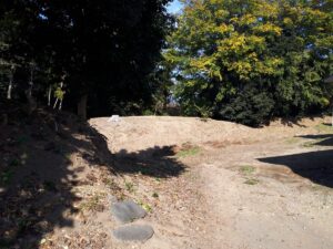 榎下城跡地に建立された久昌寺様の本堂の周囲には御堀の跡などが残っています。